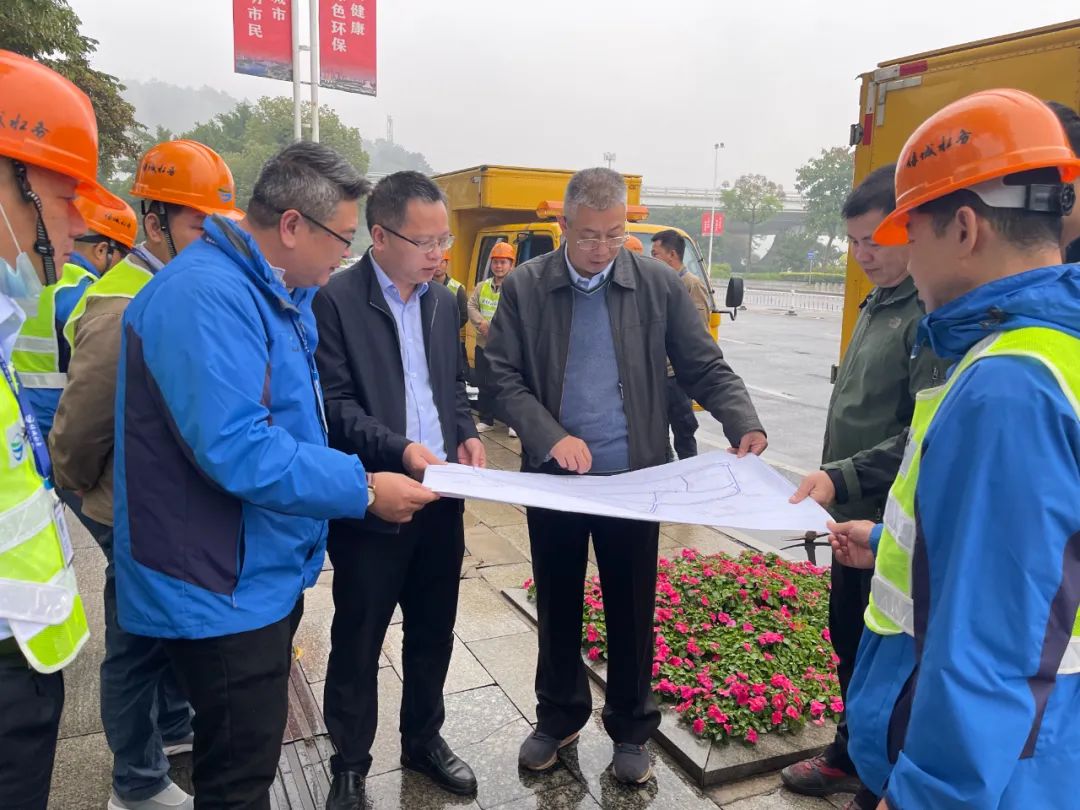 徐斌元(右三)在供水保障工作一線指導(dǎo)工作。(蘇澤洋 攝)
