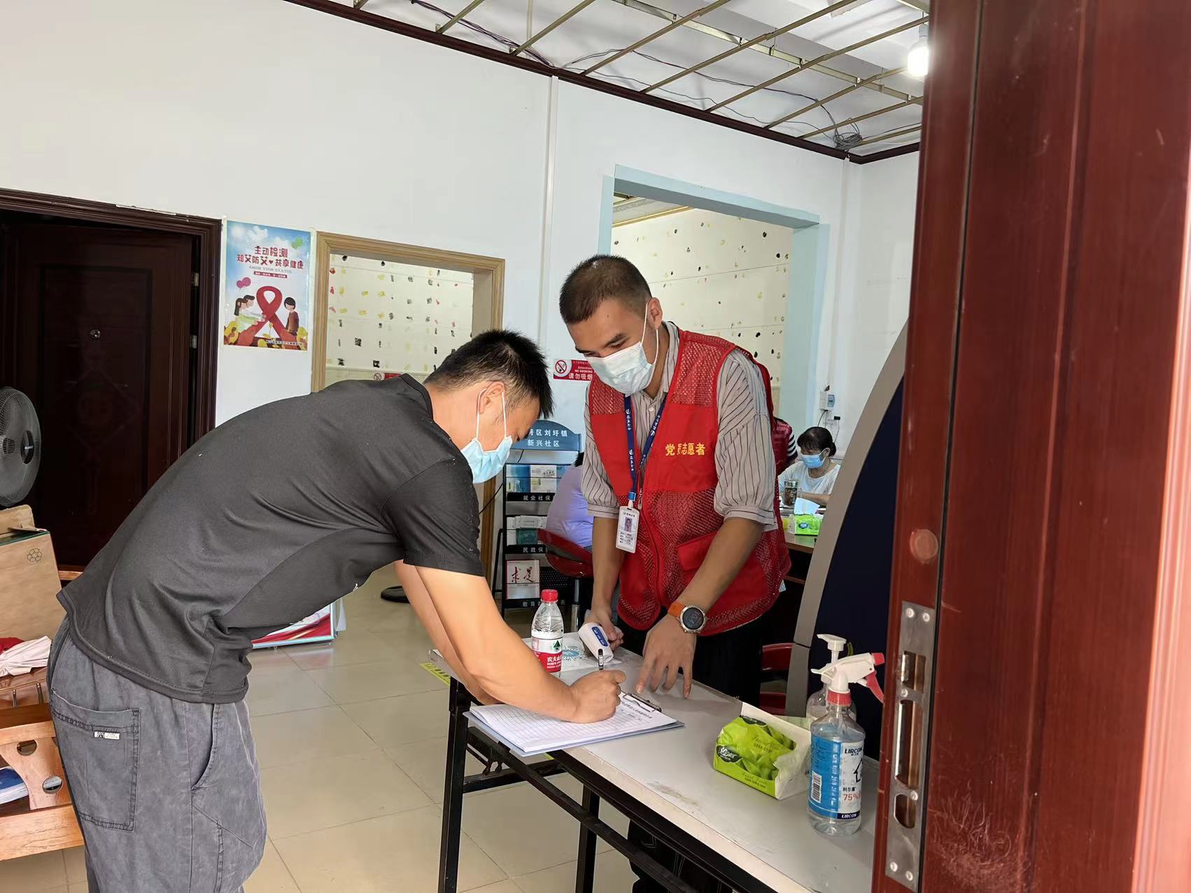 圖為機(jī)關(guān)第三黨支部黨員協(xié)助社區(qū)做好核酸檢測登記工作