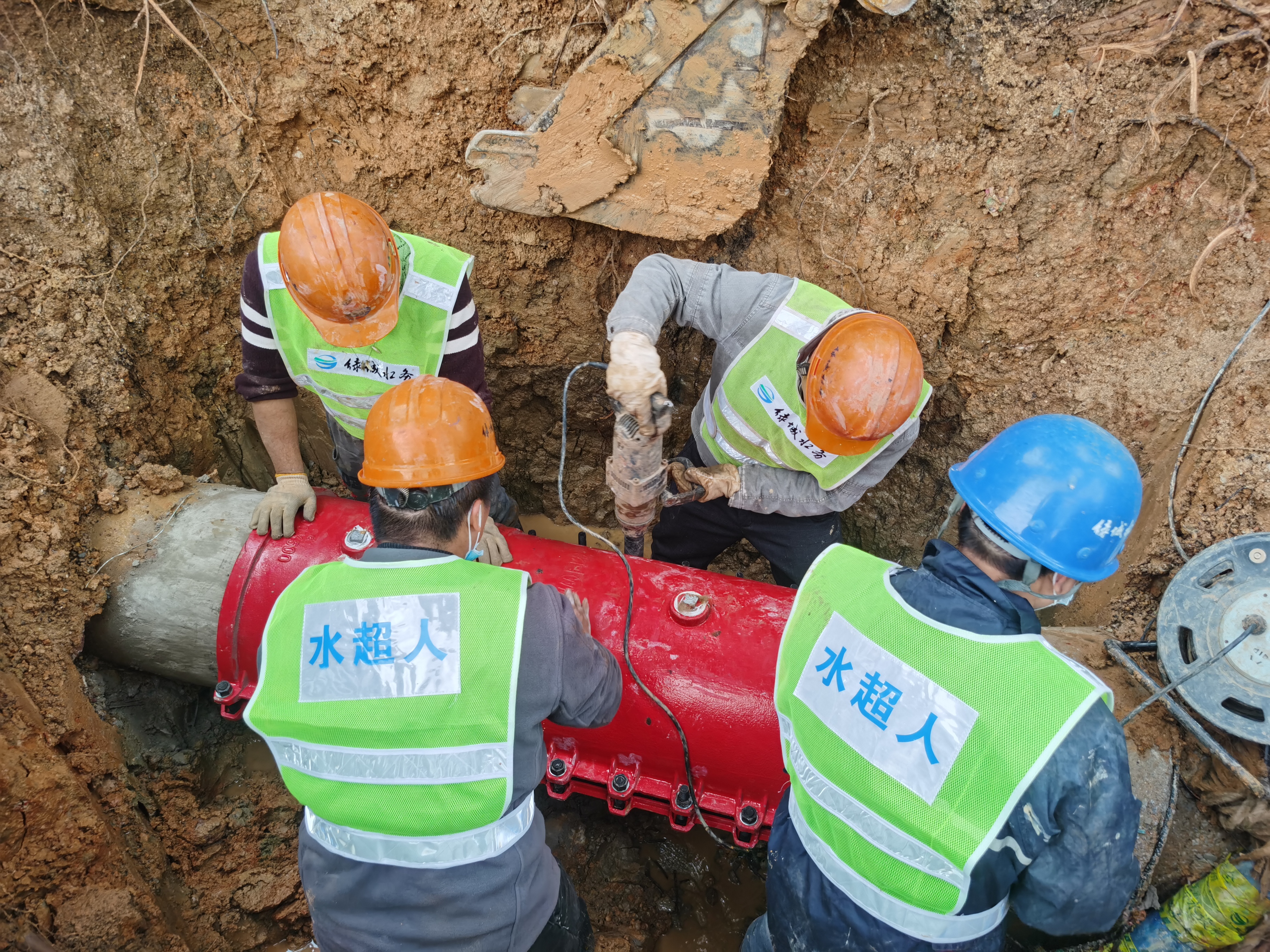 管網(wǎng)管理處“水超人”黨員先鋒示范服務隊晝夜不間斷搶修水管,為市民安全用水保駕護航。徐振峰 攝