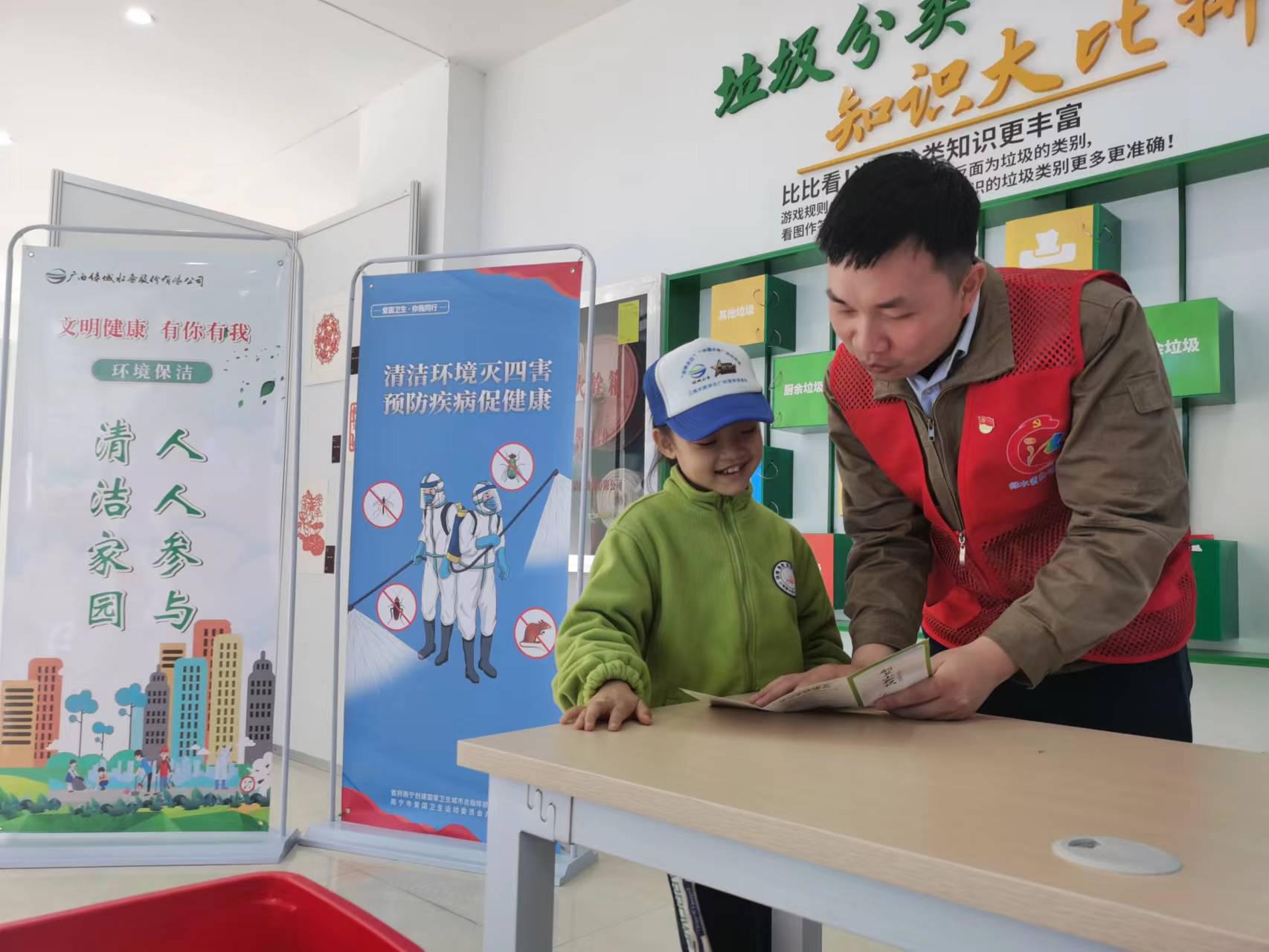 講解員和小學(xué)生一起學(xué)習(xí)創(chuàng)衛(wèi)小知識