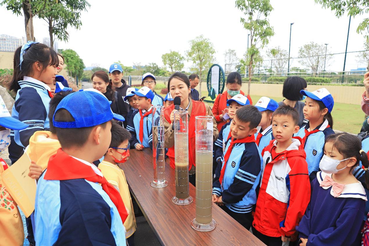 在水科普館,孩子們與講解員一起參與了水科學(xué)小實(shí)驗(yàn),通過親自動手操作凈水科學(xué)實(shí)驗(yàn),更直觀地感受到“干凈水”的由來。在垃圾分類宣傳陣地,孩子們利用陣地中的道具開展垃圾分類競賽游戲,在歡聲笑語中加深了對垃圾分類的認(rèn)識。