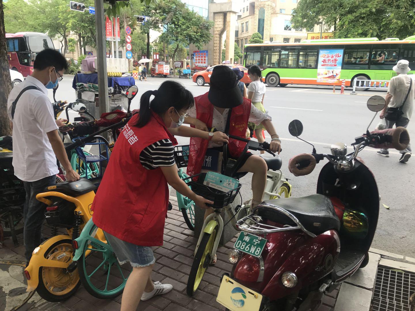 共享單車為居民提供了便利,唱響了綠色出行的理念,然而亂停亂放、隨意毀壞等現(xiàn)象接踵而來,成了靚麗風(fēng)景線上一抹不文明的色彩。青秀區(qū)津頭路口周邊都是老舊小區(qū),道路狹窄,交通擁擠,共享單車隨便擺放的問題比較嚴(yán)重。凌鐵水廠的志愿者們充分發(fā)揚(yáng)了不怕臟、不怕累、不怕苦的工作作風(fēng),在青秀區(qū)街頭開展“”共享單車隨手扶志愿活動(dòng)”,對(duì)主干道出現(xiàn)共享單車扎堆、占道、歪倒的情況,他們會(huì)將車扶好,排放整齊,而對(duì)于一些零散停放的車,他們便集中搬到一個(gè)地方排好。