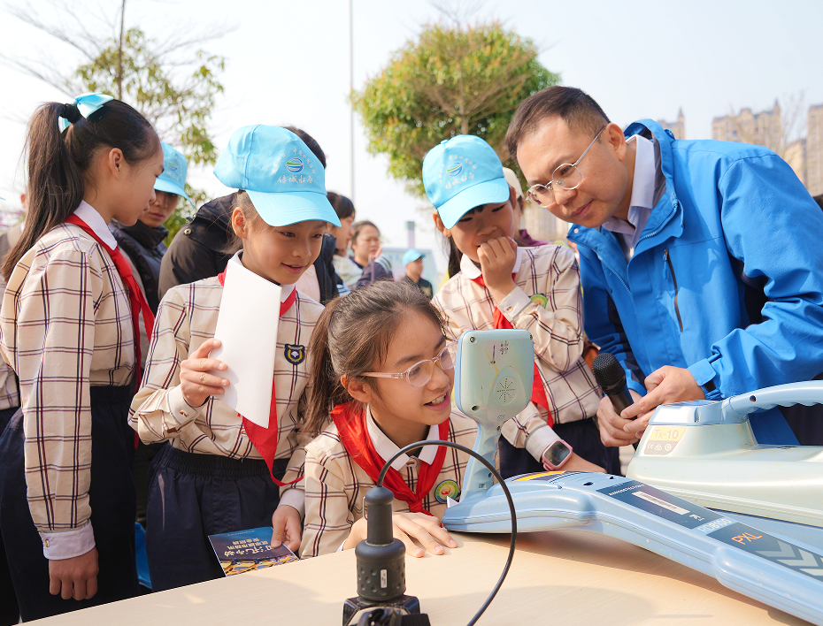 設(shè)置在廣場(chǎng)上的“水科技設(shè)備展”專區(qū),從專業(yè)的管道檢測(cè)儀,到神秘的節(jié)水水表,再到功能強(qiáng)大的小型排水車,各具特色的專業(yè)設(shè)備吸引了大家駐足觀看、拍照,不少學(xué)生更是拿起設(shè)備,來(lái)了一輪沉浸式的體驗(yàn)。