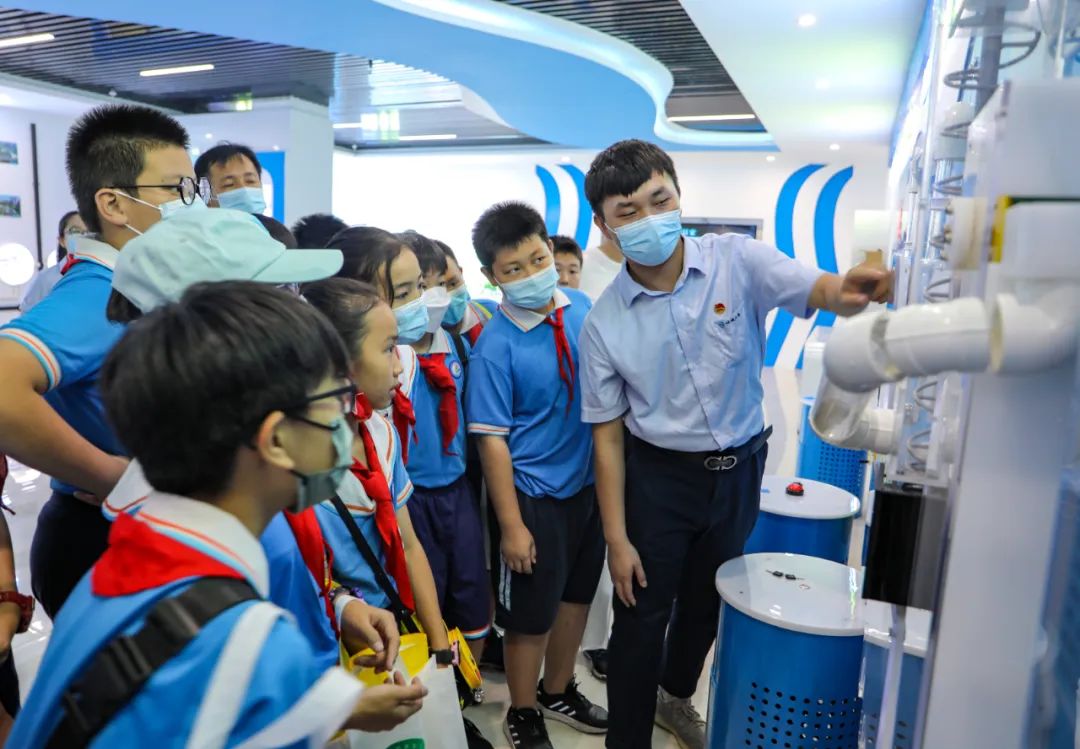 ▲講解員正在向小學(xué)生講解水知識