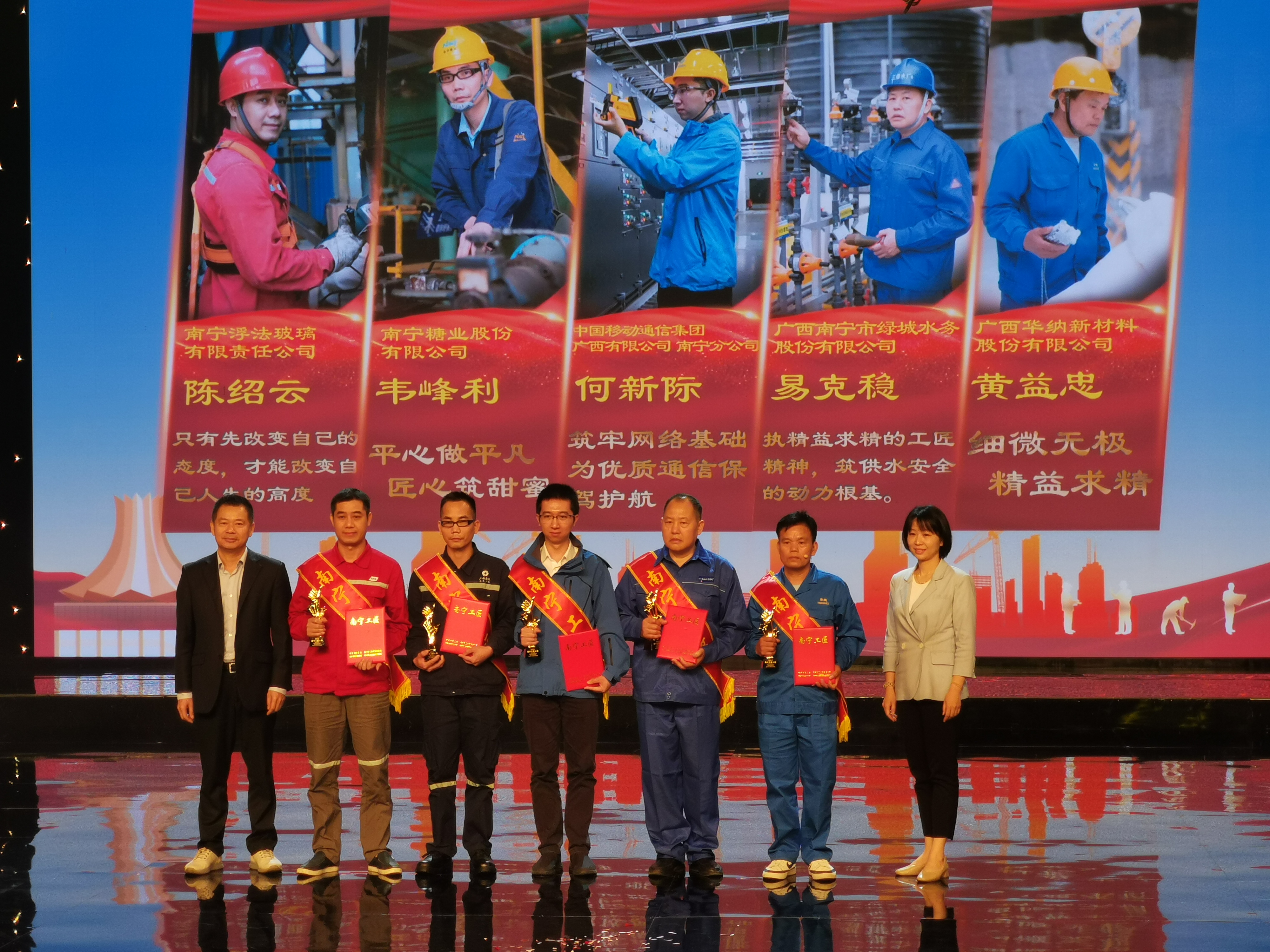南寧市2022年度“南寧工匠”命名暨2023年度“南寧工匠”選樹(shù)媒體通氣會(huì)上,公司員工易克穩(wěn)(右三)榮獲2022年“南寧工匠”殊榮